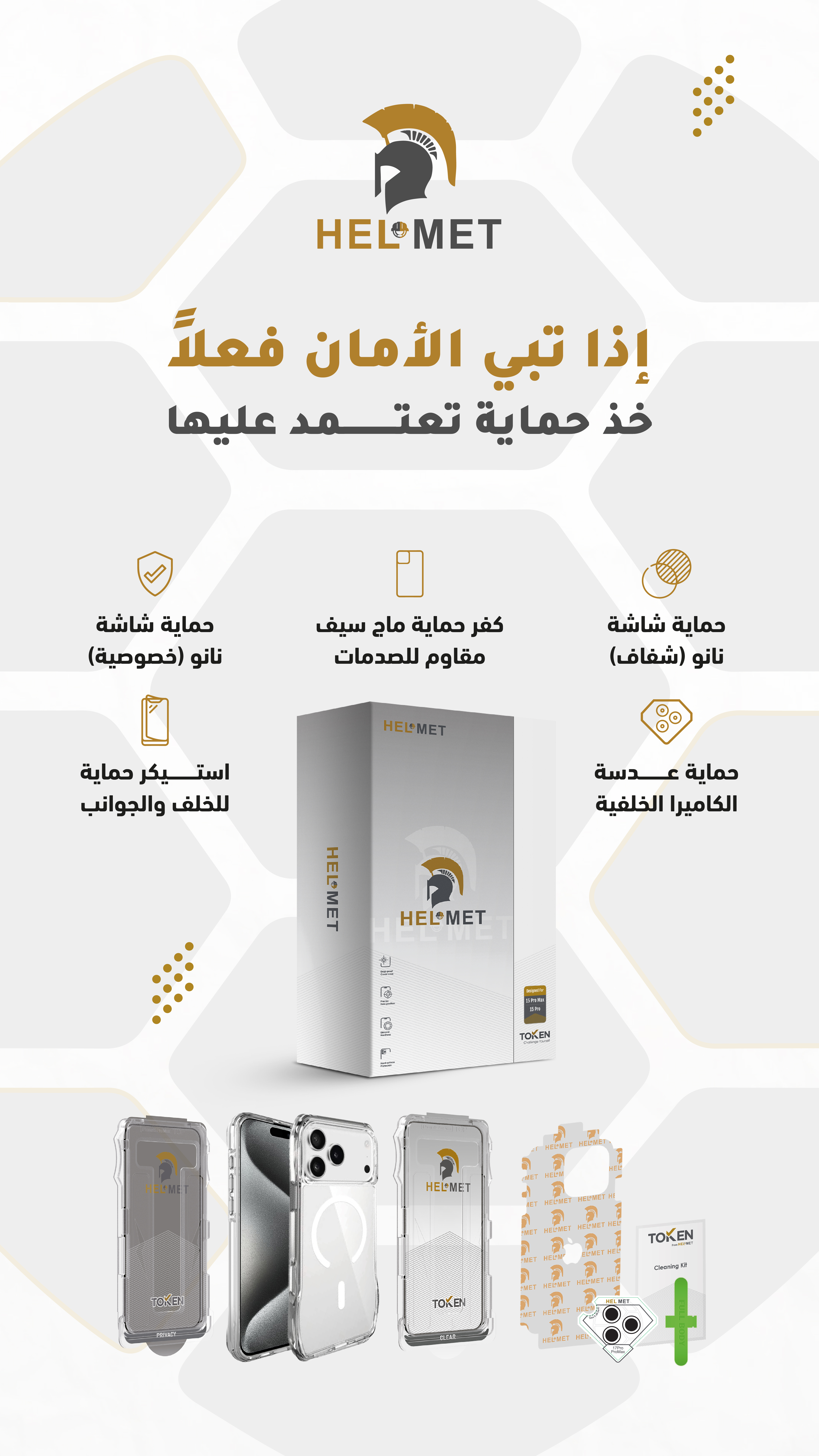 بكج الحماية الأقوى HELMET TOKEN بضمان سنة ضد الكسر للايفون 17